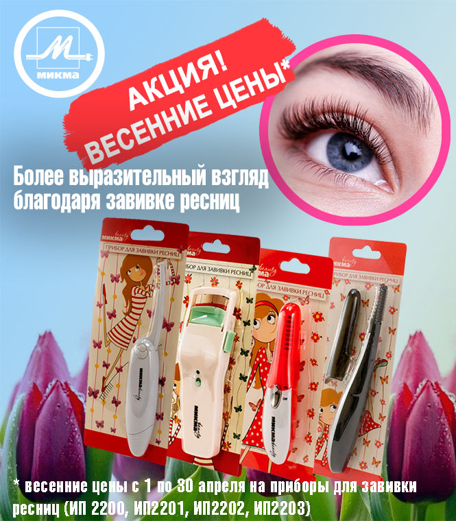 весенние цены с 1 по 30 апреля на приборы для завивки ресниц (ИП 2200, ИП2201, ИП2202, ИП2203)